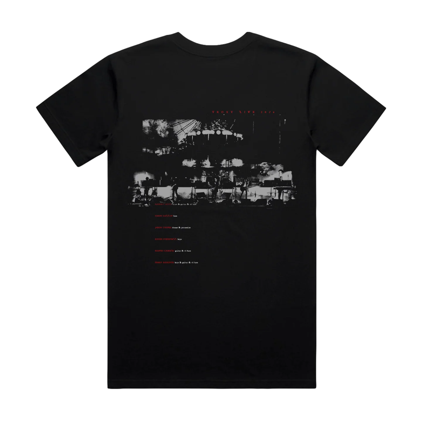 Classic fitting unisex v-neck t-shirt in black featuring a design inspired by The Show Of A Lost World: Troxy Live 2024 printed on the front and back. Constructed from 100% cotton.
